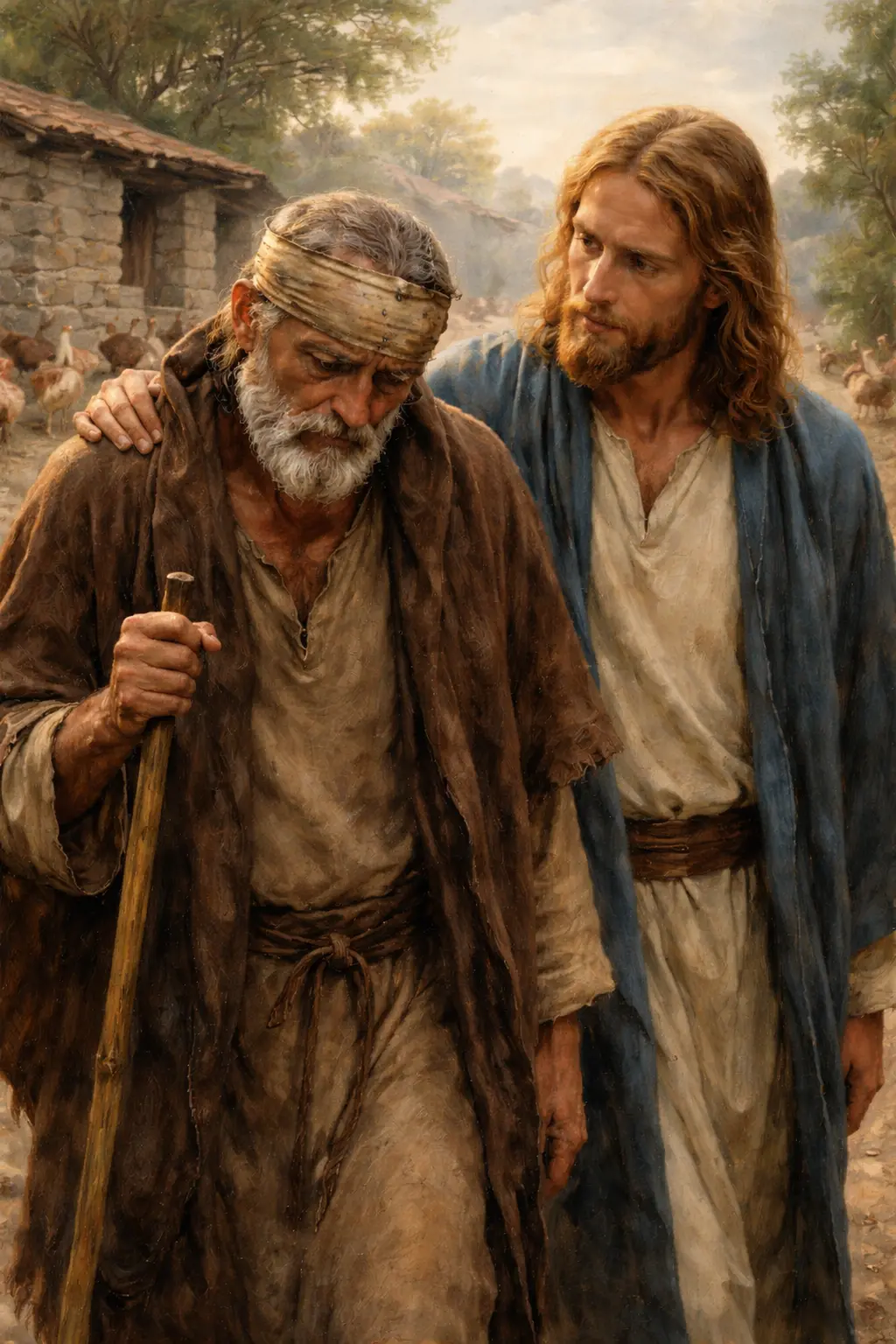 "Donne-moi le souvenir et la haine qui te rendent malade et laisse-moi mettre dans ton cœur l'amour !" (...) L'homme, la tête penchée, pleure, sans que rien ne trahisse ses larmes. Seul Jésus, qui marche à côté de lui, le voit." (EMV 188.4)
